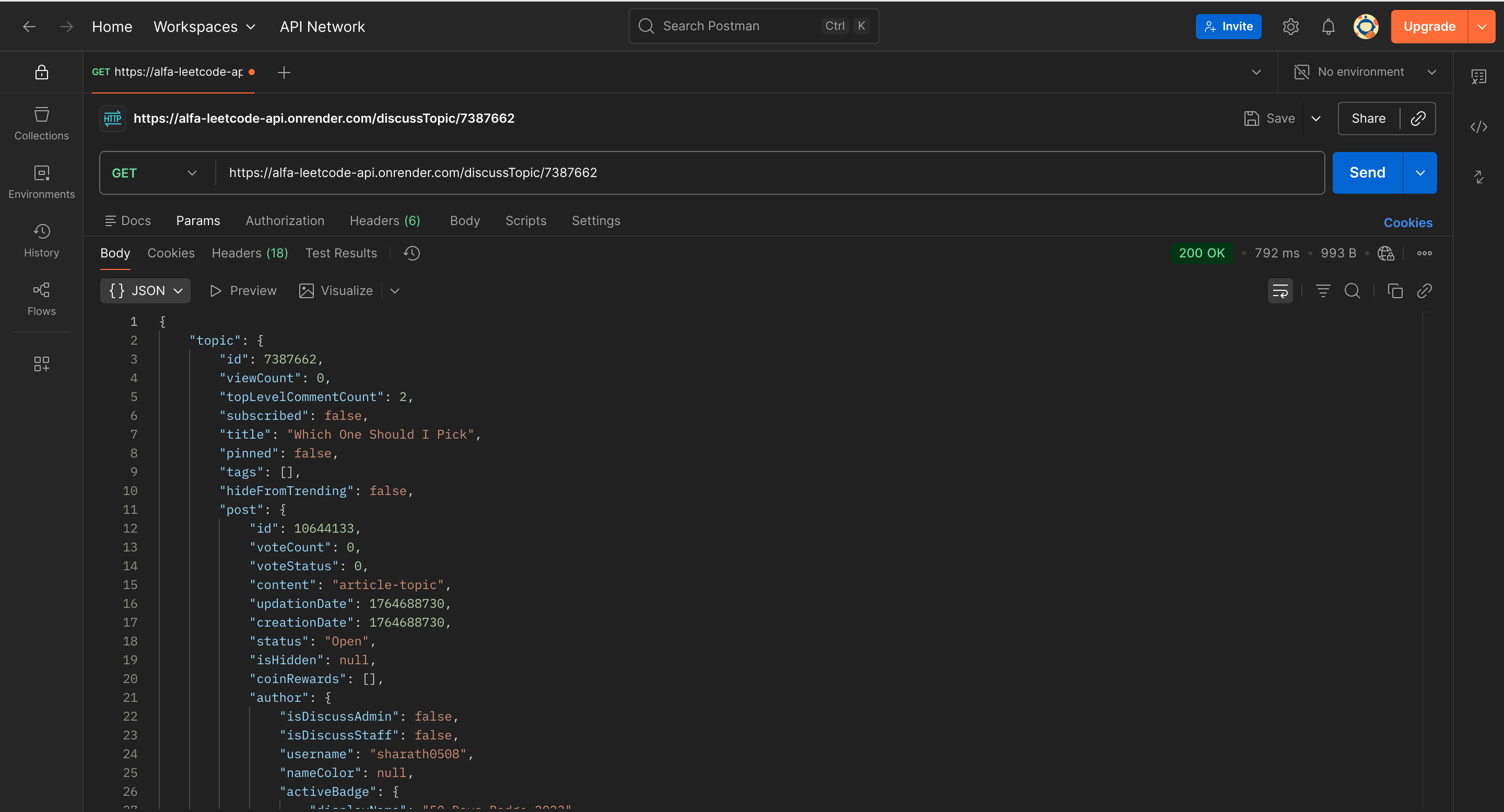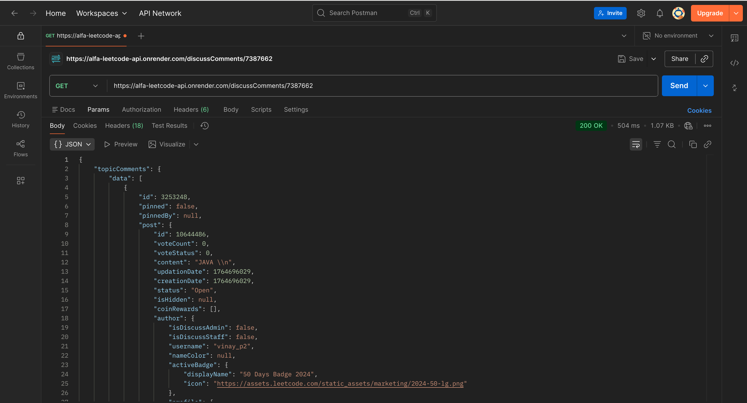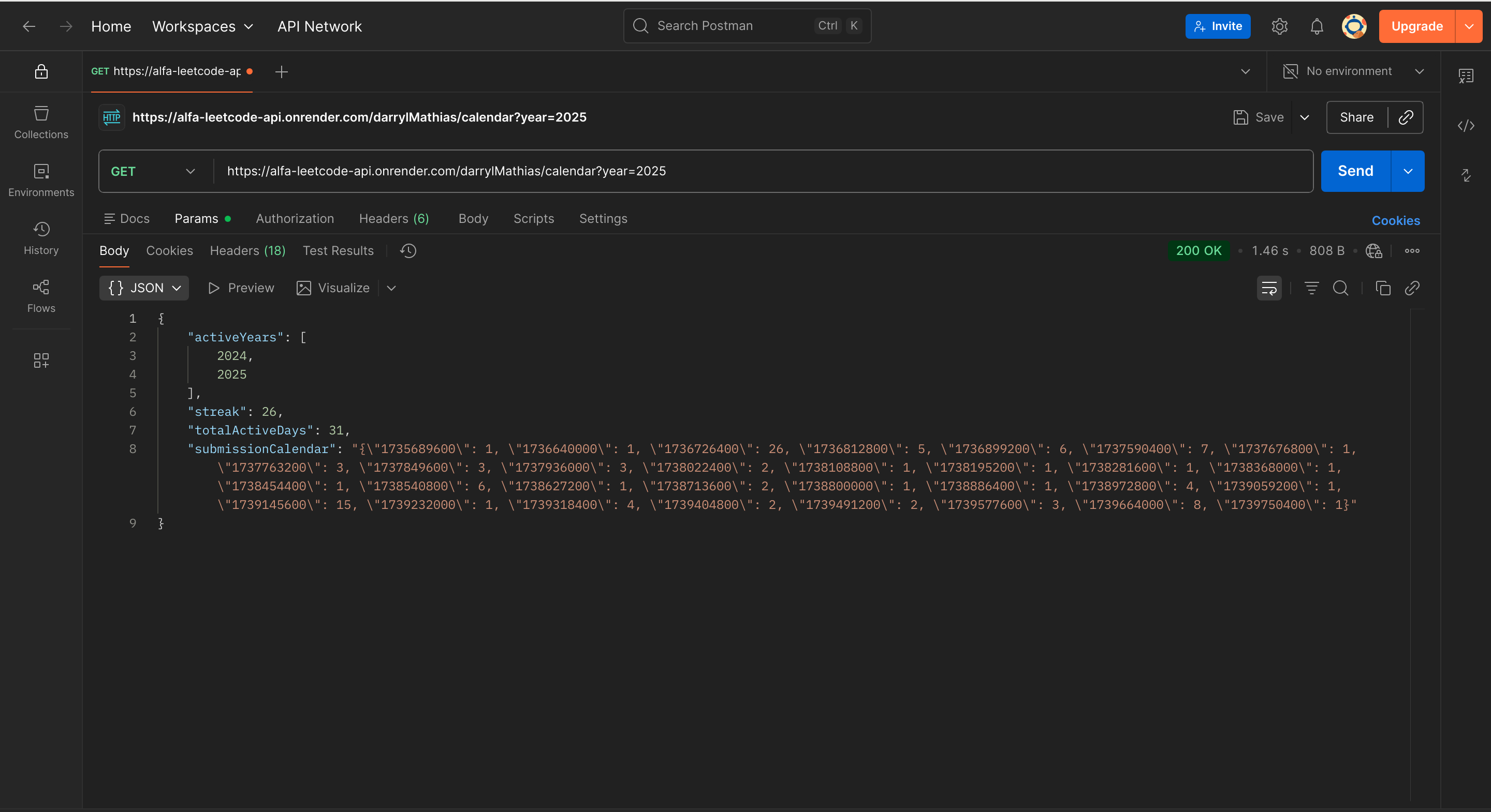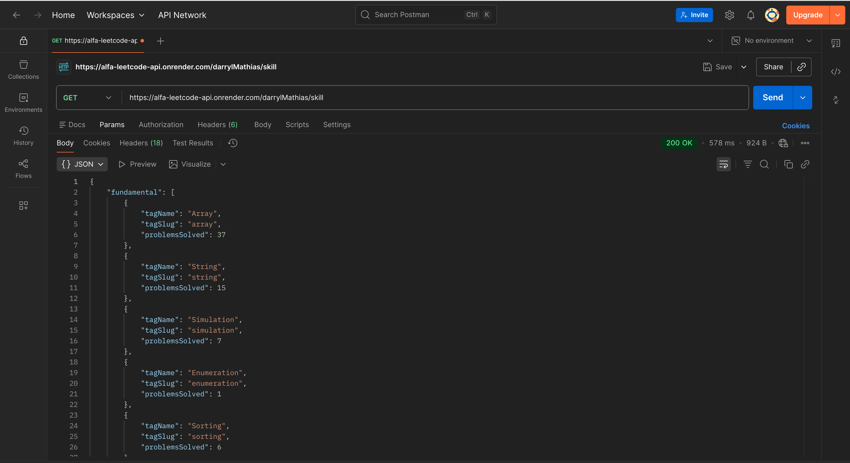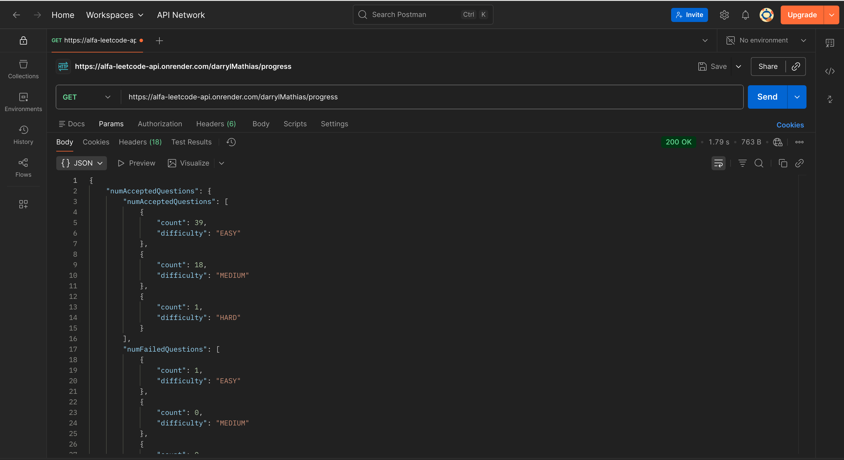 alfa-leetcode-api is a custom solution born out of the need for a well-documented and detailed LeetCode API. This project is designed to provide developers with endpoints that offer insights into a user’s profile, badges, solved questions, contest details, contest history, submissions, and also daily questions, selected problem, list of problems.
