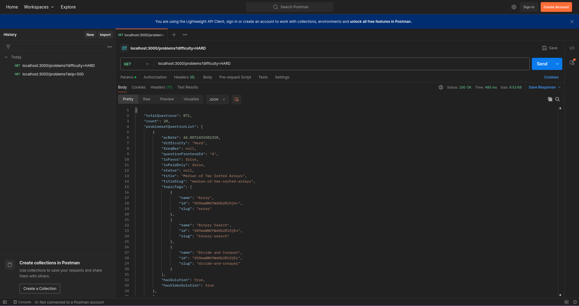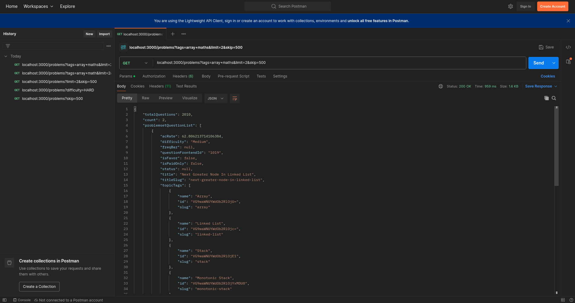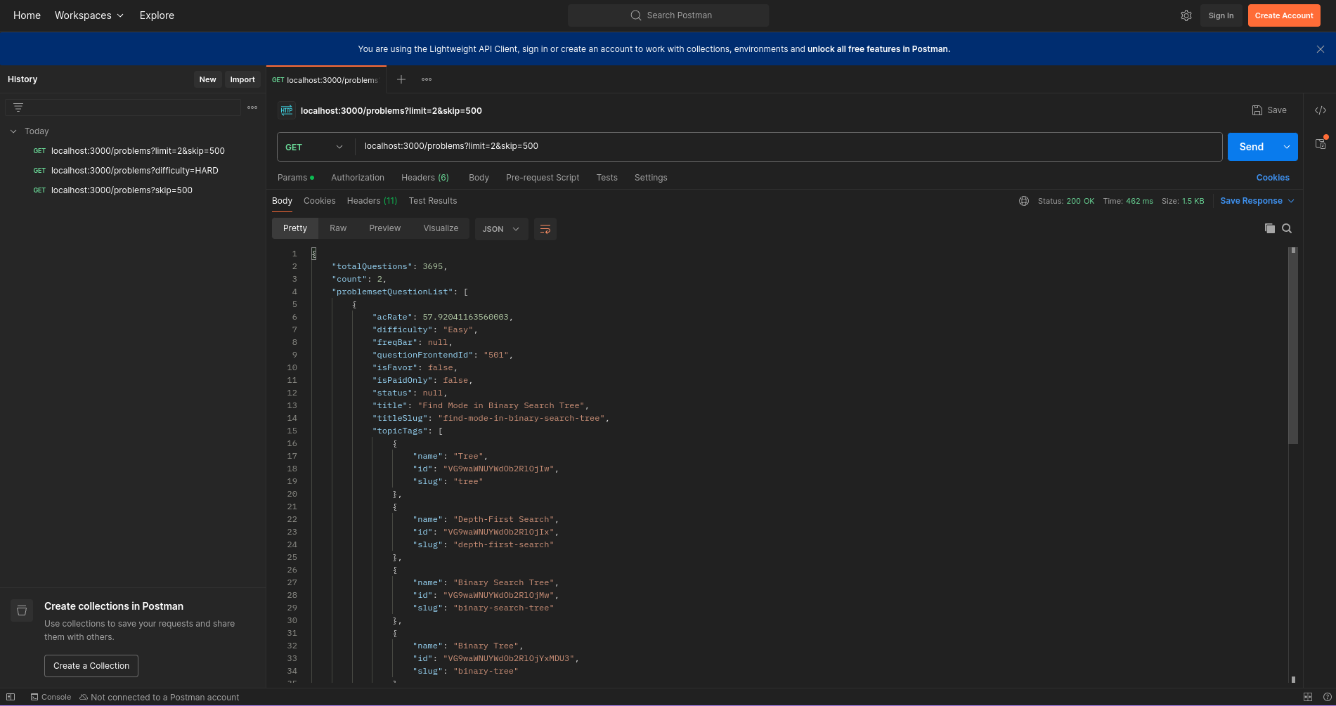 At First, I struggled to find proper documentation for the leetcode.com/graphql. After scouring various articles about the LeetCode public API, I still couldn’t find the comprehensive documentation I was looking for. Fueled by the desire to fill this gap I created alfa-leetcode-api.